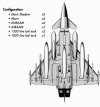 Powerplant: | Eurojet EJ200 (2x) | Engine Thrust: | 180 kn || 40,000 lbs | Length: | 52.36 ft || 14.9 6m | Height: | 17.3 ft || 5.28 m | Wingspan: | 36 ft || 10.95 m | Weight: | 24,240 lbs || 10,995 kg (Empty) | Max. Speed: | 1,483 mph || Mach 2.0 || 2,387 km/h | Range: | 600 nm || 1112 km || 690 miles (Max range with max internal fuel) | Ceiling: | 60,000 ft || 18,290 m | Crew: | 1 | costs: | $45-50 million |